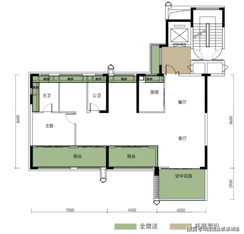 超大赠送面积(不计产权面积)+电梯前室拓展面积,